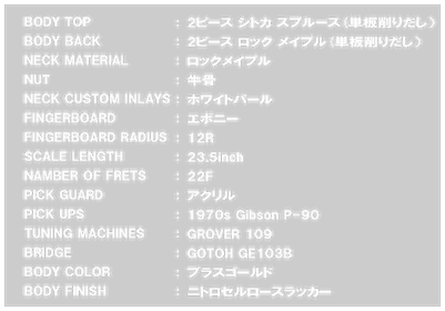 スペックはGibson Byrdland Florentine Cutawayと同様。